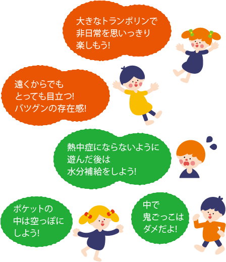 屋外で使用される際は安全面を考慮して、雨天・強風時の運営は避けてください。事故や損傷の恐れがあります。