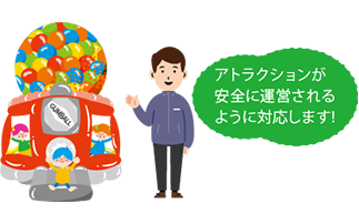 最低1名は常時アトラクション運営時に配置してください。また、休憩時のスタッフ不在を防ぐために交代スタッフを確保してください。
